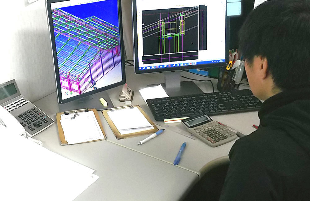 製作に必要となる帳票の作成や溶接材料・鋼材の発注を行います。