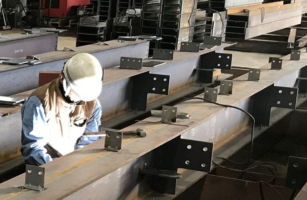 仕入れた部材の切断や穴開け、摩擦面の処理、開先の加工をしていきます。